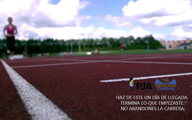Haz de este un día de llegada. Termina lo que empezaste. No abandones la carrera; ve hasta el fin, Di, corno Pablo: «Pero de ninguna cosa hago caso, ni estimo preciosa mi vida para mí mismo, con tal que acabe mi carrera con gozo, Y el ministerio que recibí del Señor Jesús, para dar testimonio del evangelio de la gracia de Dios».