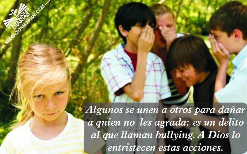 Algunos se unen a otros para dañar a quien no les agrada: es un delito al que llaman bullying. A Dios lo entristecen estas acciones. Recuerda que dio a su Hijo, Jesús, por amor a todos, a ti y todos los que te rodean, inclusive aquellos que no te caen bien. Así que respeta la vida y la integridad de todos.